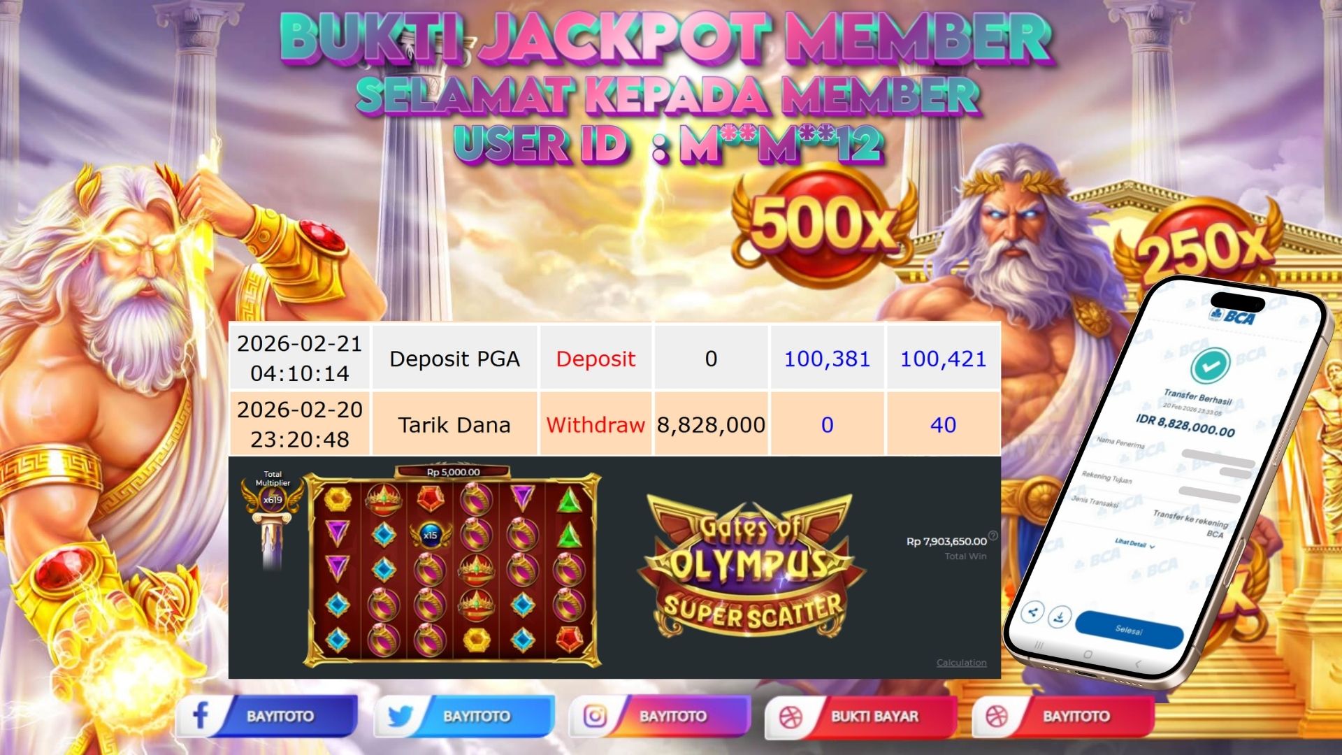 Selamat kepada User id : M**M**12 Telah berhasil mendapatkan kemenangan besar p
