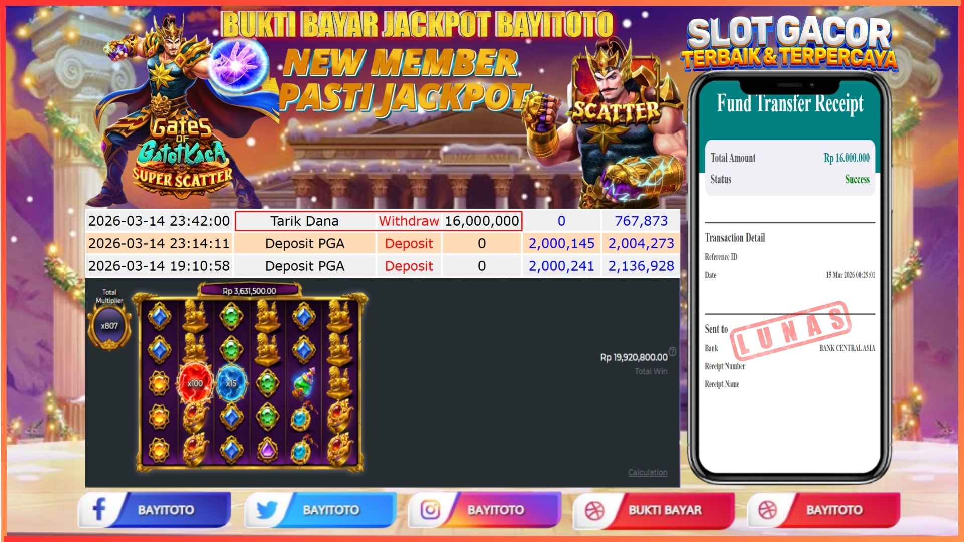 Selamat kepada User id : GE***L***T Telah berhasil mendapatkan kemenangan besar
