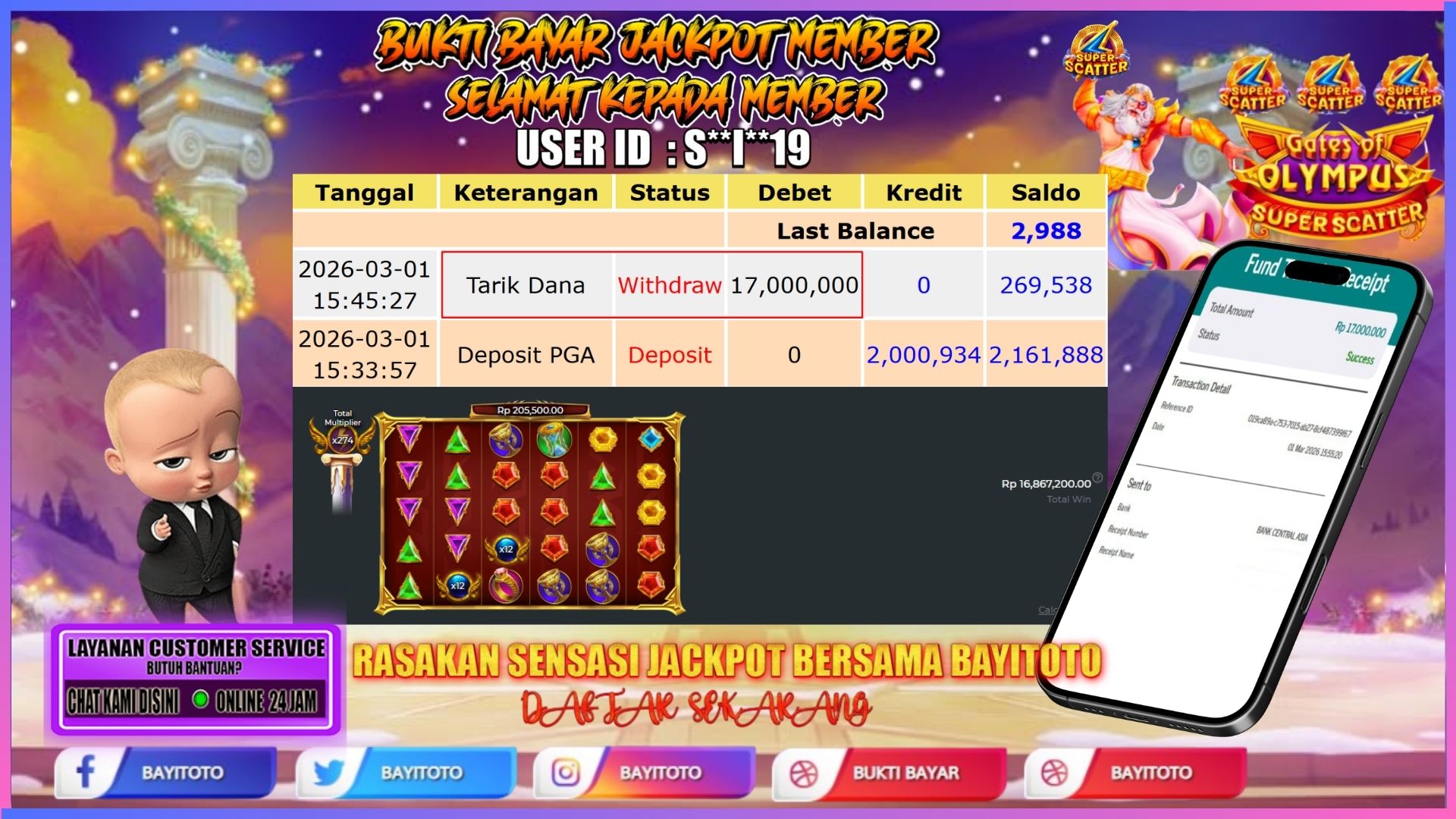 Selamat kepada User id : S**I**19 Telah berhasil mendapatkan kemenangan besar p