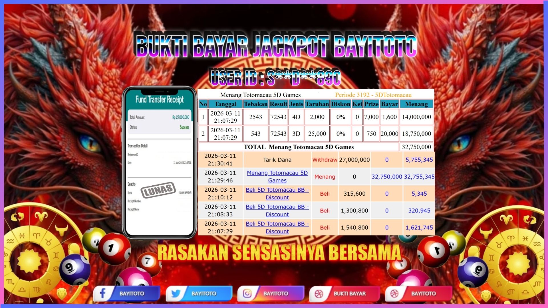 Selamat kepada User id : S**D***890 Telah berhasil mendapatkan kemenangan besar