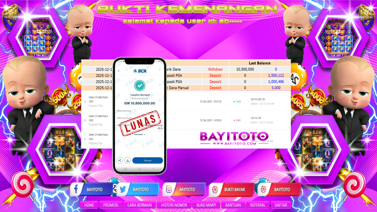 Selamat kepada User id : AB****** Telah berhasil mendapatkan kemenangan besar pa
