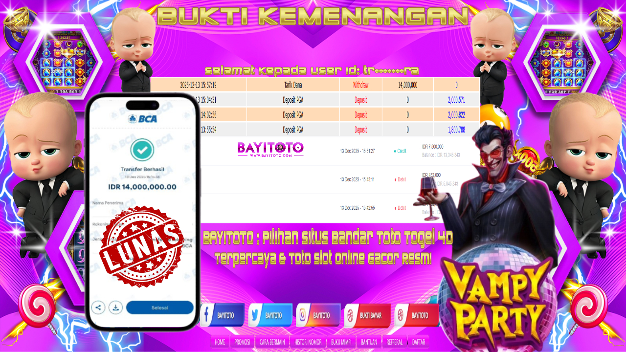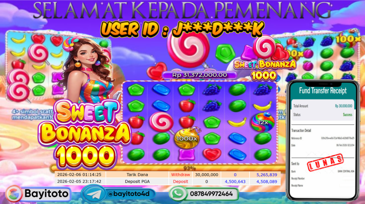Selamat kepada User id : j***d***k Telah berhasil mendapatkan kemenangan besar